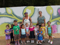 A 150-foot colorful mural features images of life along the Mississippi River, including a sailboat, the Clark Bridge, and the River Road. Brightly colored flowers and vines weave among the panels, connecting the scenery. The mural was a collaboration between Alton Main Street, the Rotary Club of Alton-Godfrey, Hayner Library, and the Jacoby Arts Center. Nearly 100 children who attended Riverbend Head Start helped the artist paint the mural. “I helped paint this purple flower,” said Zach Ansell, whose mother, Sarah, chaired the project’s design committee.